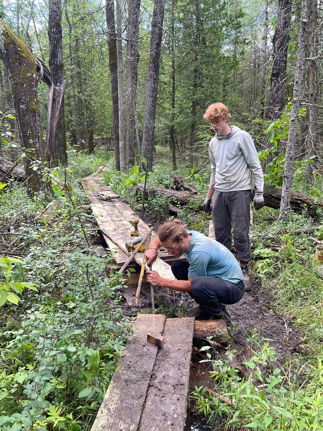 “About three quarters of the old boardwalk had been destroyed or pulled out,” Delhagen said. “We fixed the remaining parts, replacing rotten boards and stabilizing it, and then built a new section of boardwalk along the rest of the trail.”